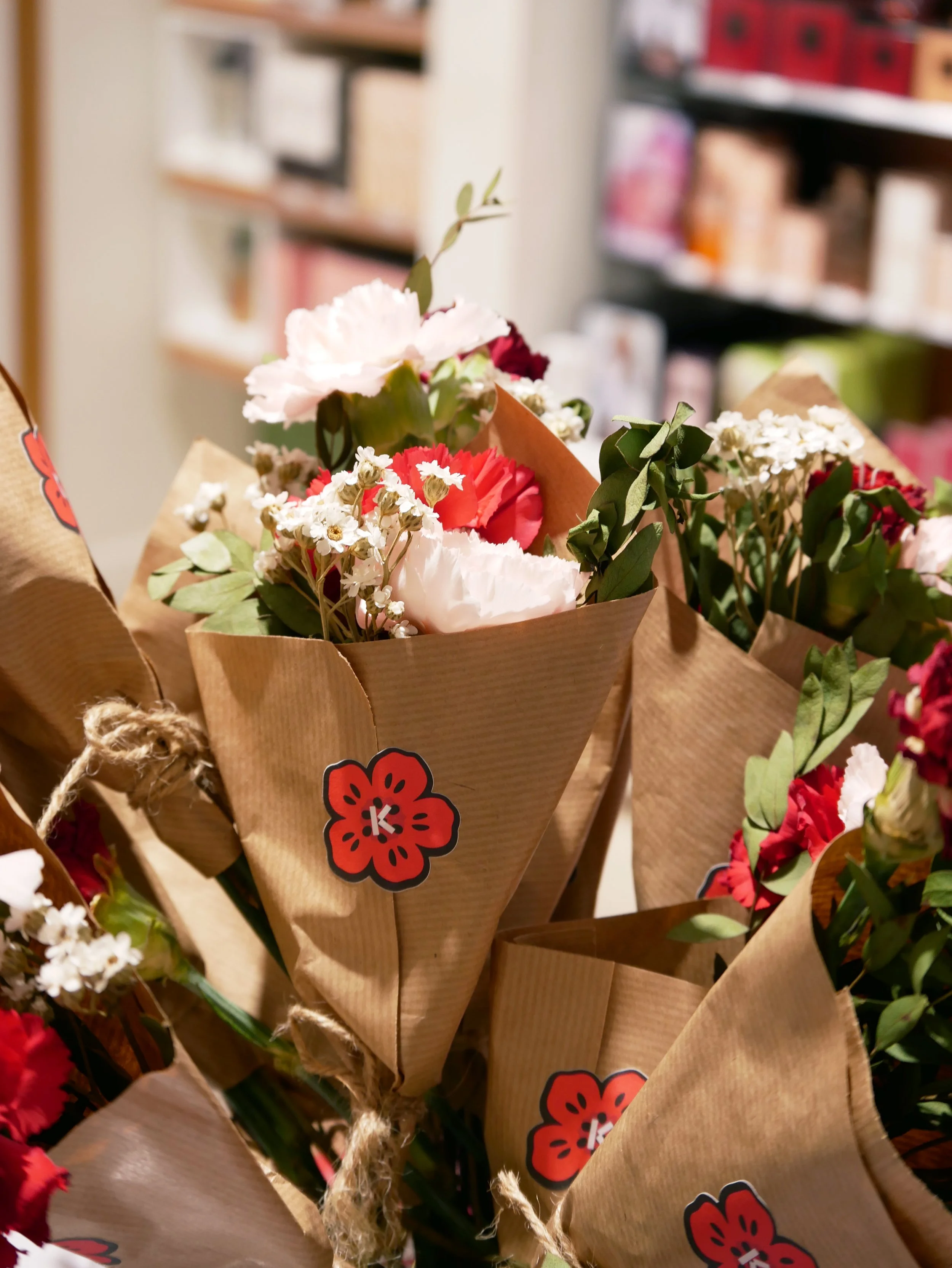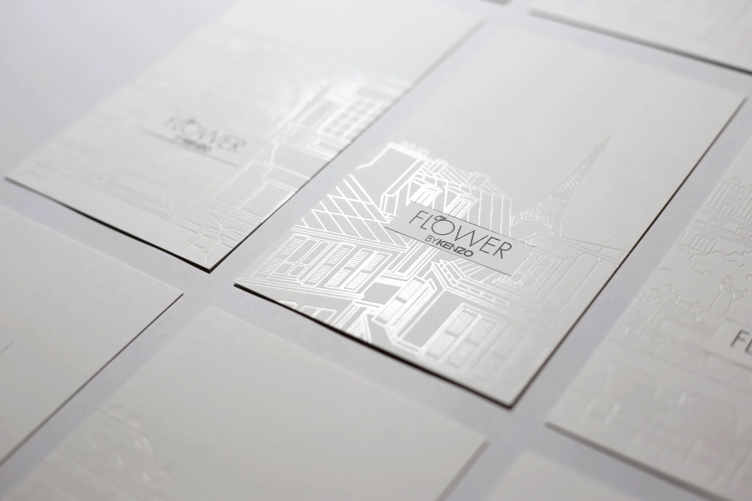 In-store, to emphasise the provenance of the flowers, we created a set of limited prints with parisian illustrations, delicately debossed and varnished. Dried flowers were added to the print, making it an unexpected bouquet all together.