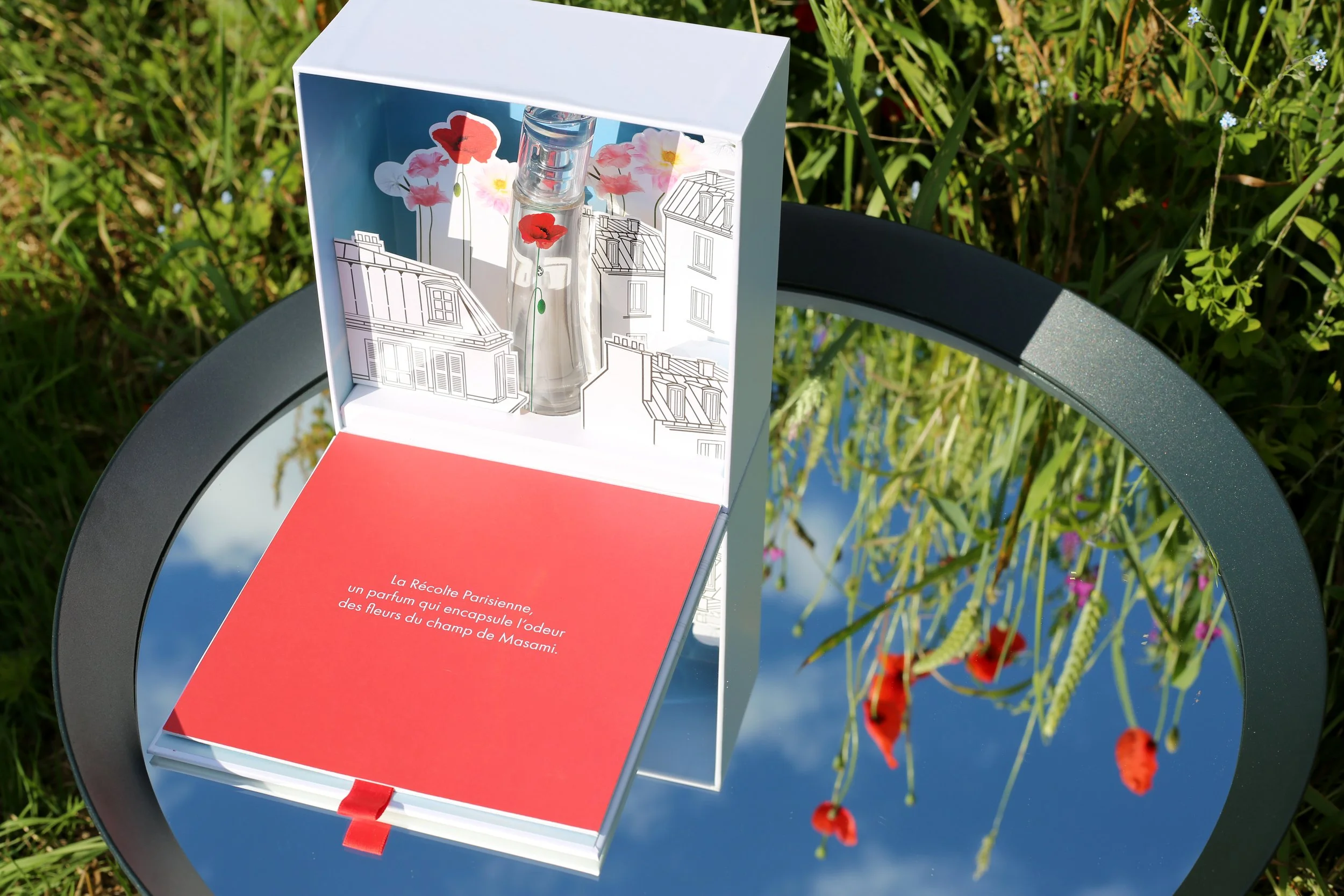 Before the launch, we designed a scene with flowers grown within Parisian Hausmann buildings to help brand ambassadors to introduce the fragrance through storytelling. The B2B tool was produced in a limited edition of 30 copies.